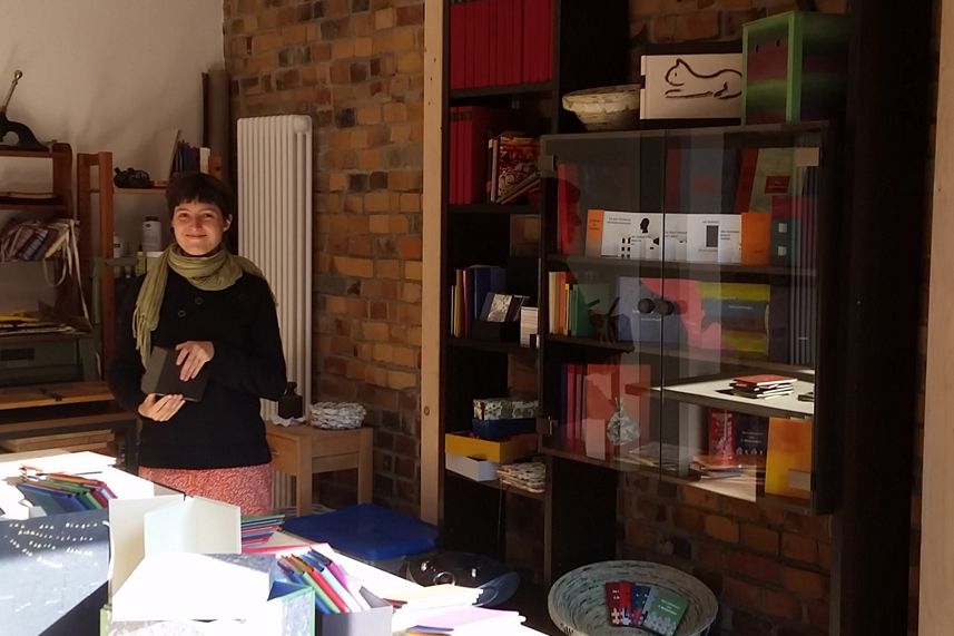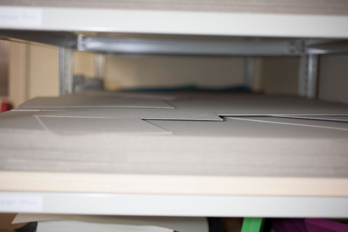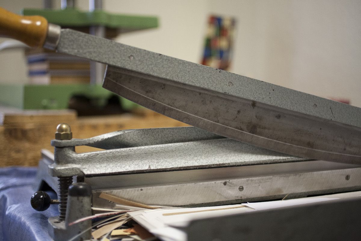 Hier entstehen die vielfältigen Produkte meiner Arbeit mit Papier und Pappe. Ich arbeite mit Pappschere, Planschneider, Prägepresse, Presse, Lumbeckgerät, Rillgerät und vielen Kleinigkeiten wie Nadel, Pinsel und Falzbein. Die Handarbeit ermöglicht höchste Qualität für jedes einzelne Objekt – auch in Serien.
