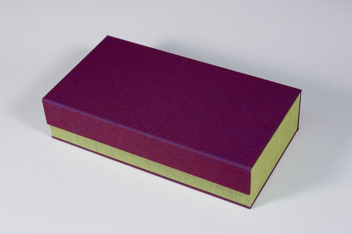 Sie sind mit Einbandleinen bezogen und von außen ein- oder zweifarbig, innen kann eine dritte Farbe hinzukommen.